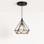 Suspension géométrique noire en métal au design diamant, idéale pour une ambiance moderne et industrielle.